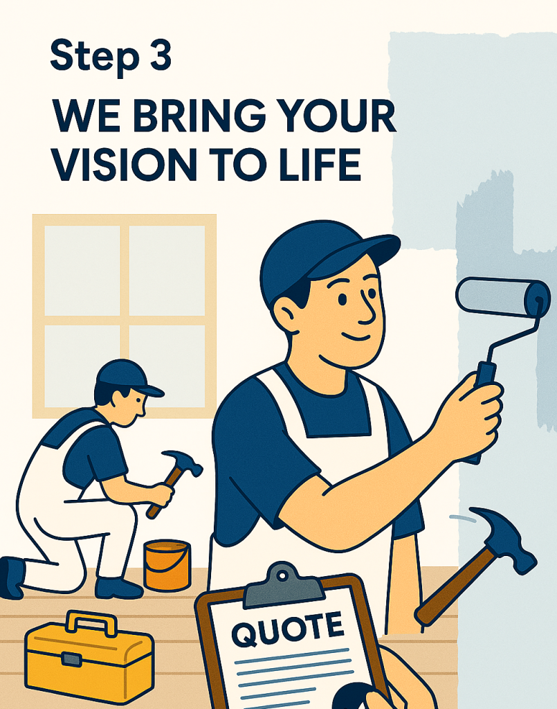 No surprises or hidden costs. Based on our assessment, you’ll receive a clear, detailed, and transparent quote outlining all the work, materials, and a projected timeline. This is your Second Wish.